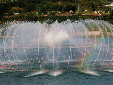 The fountain nozzles can be programmed and arranged so they swing in the same plane, forming dancing swing fountains of different shapes.